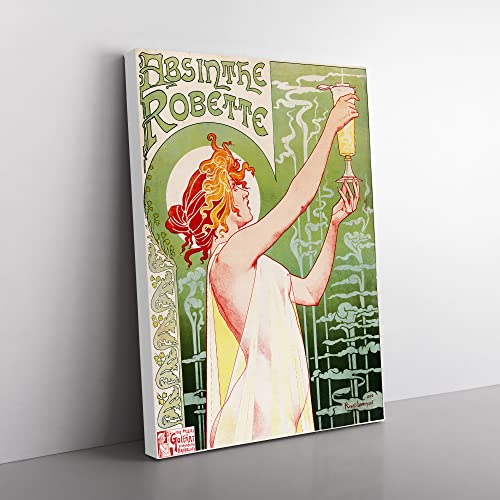 Alphonse Mucha Absinthe Robette Modern Cb Canvas Wall Art Print Ready to Hang, Framed Picture for Living Room Bedroom Home Office Décor, 24x16 Inch (60x40 cm)