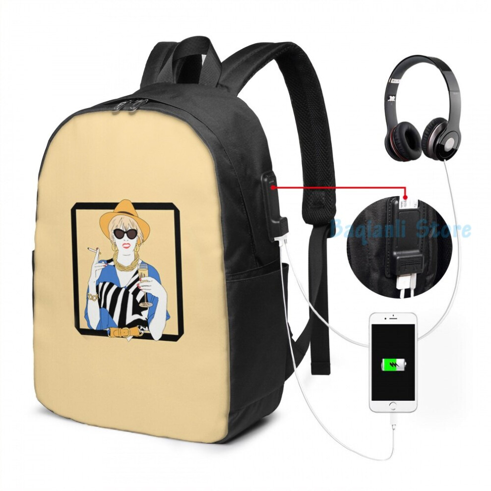Graphic print Patsy Stone Abfab aperitif absolutely Fabulous USB Charge Backpack men School bags Women bag Travel laptop bag