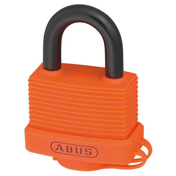 ABUS 70AL/45 Solid Aluminium Padlock - Weatherproof - with Protective Cap and Plastic Coating - ABUS Security Level 5 - Orange