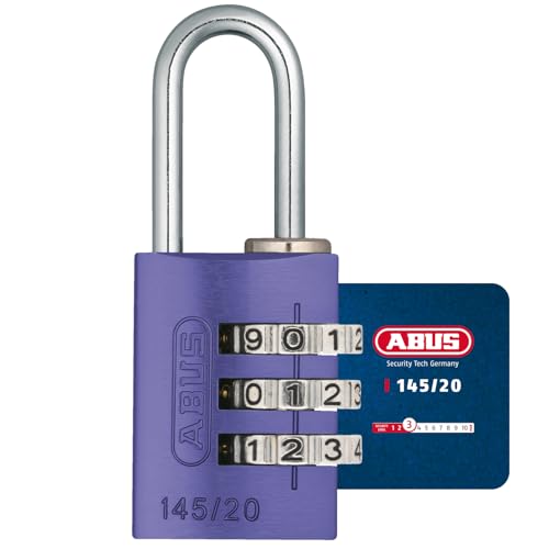 ABUS Combination Lock 145/20 Purple - Luggage Lock, Locker Lock and Much More. - Aluminium Padlock - Individually Adjustable Combination Code - ABUS Security Level 3