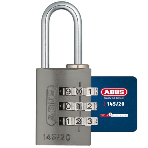 ABUS Combination Lock 145/20 Titanium - Luggage Lock, Locker Lock and Much More. - Aluminium Padlock - Individually Adjustable Numerical Code - ABUS Security Level 3