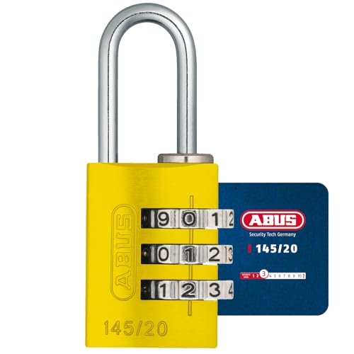 ABUS Combination Lock 145/20 Yellow - Luggage Lock, Locker Lock and Much More. - Aluminium Padlock - Individually Adjustable Combination Code - ABUS Security Level 3