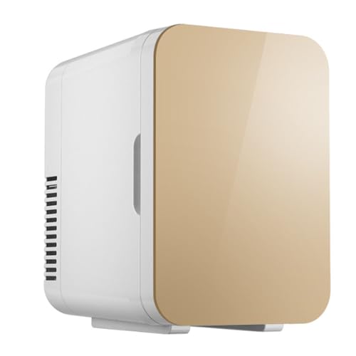 RIUGHJID Ac/dc Thermoelectric Cooler, 6L Mini Refrigerator, Cooling Fan, Portable Carrying Handle, Skin Care Drinks, Personal Refrigerator for Office Dormitory gold