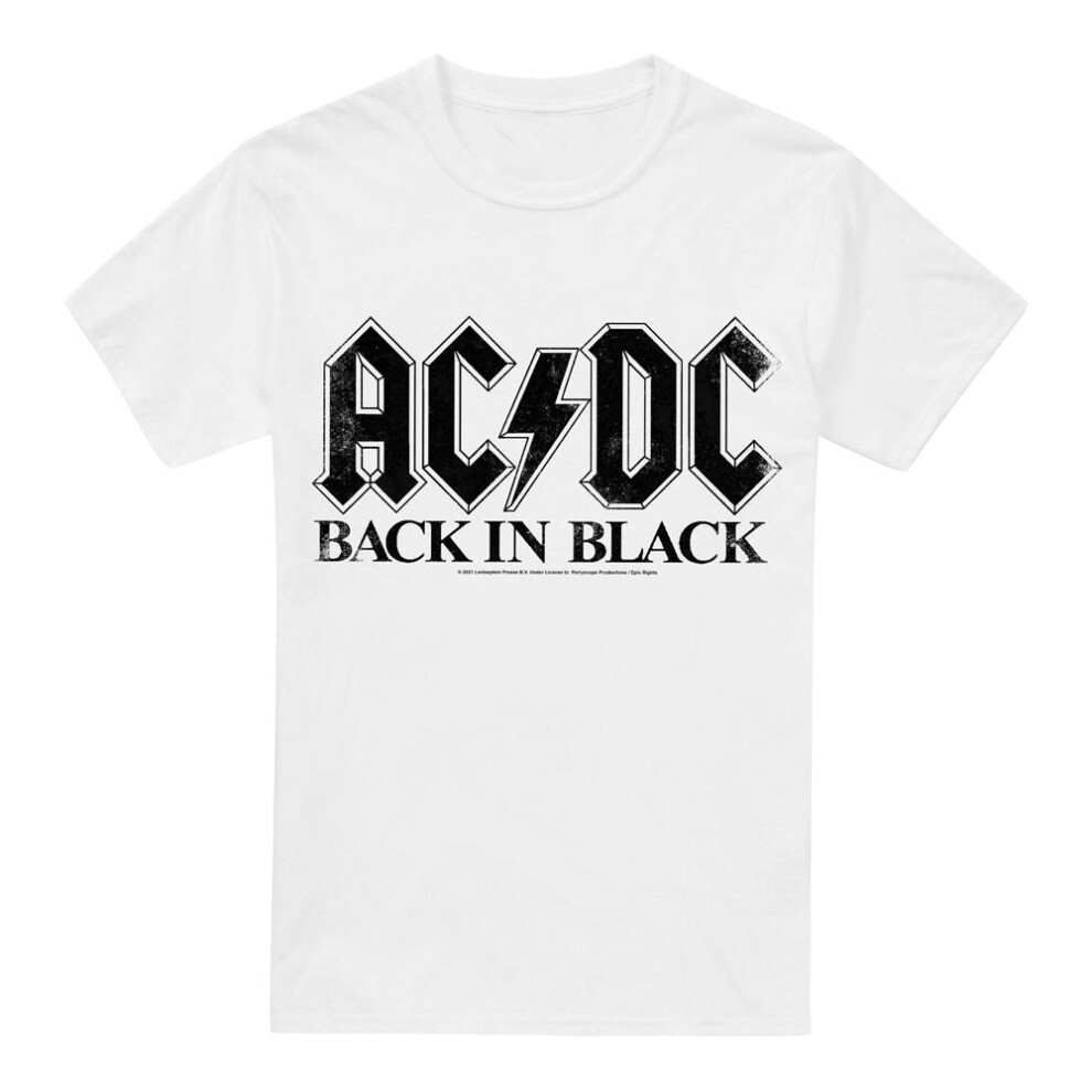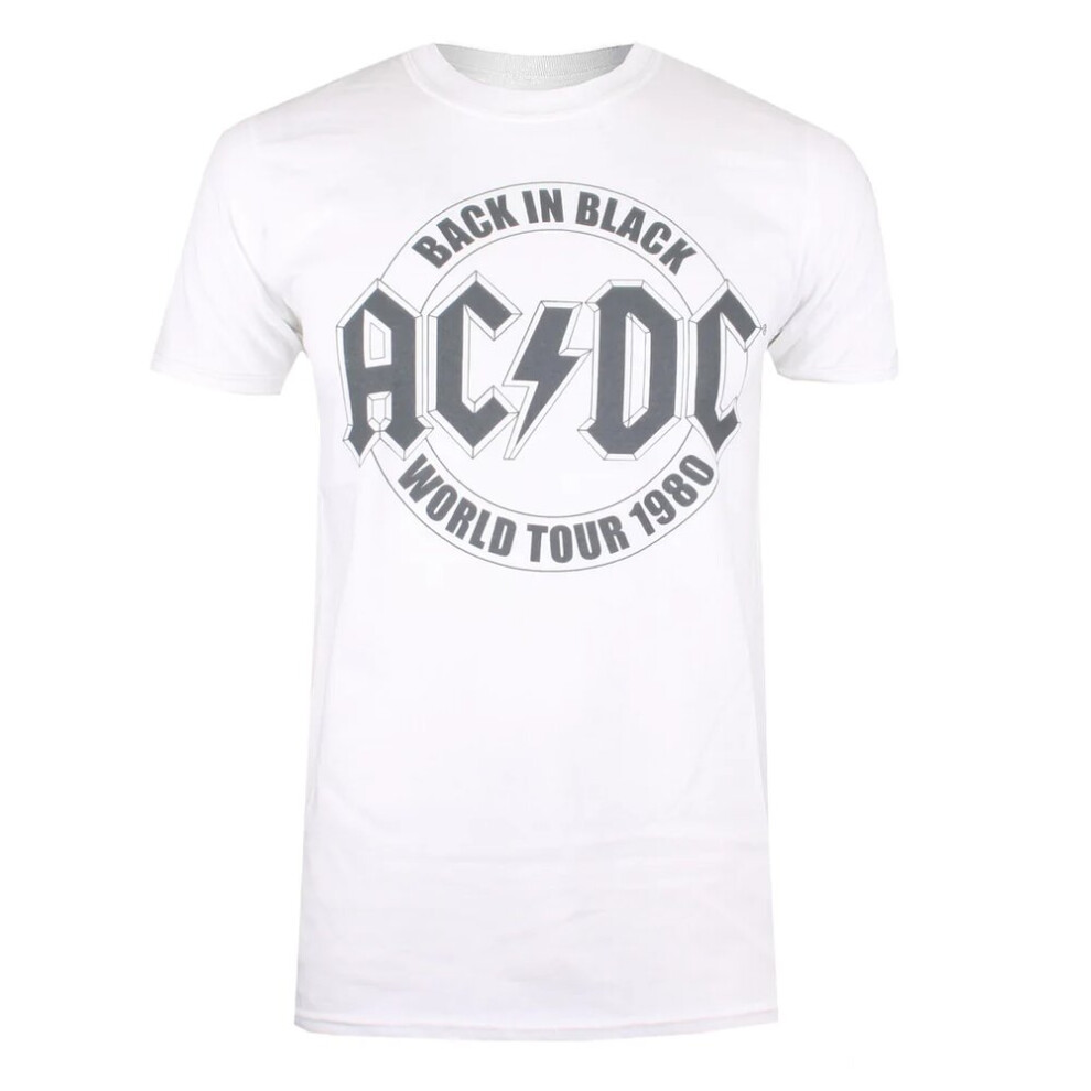 (M, White) AC/DC Mens Back In Black T-Shirt