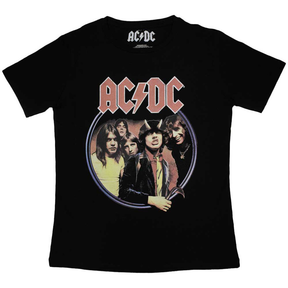 (S, Black) AC/DC Highway To Hell Circle Womens Skinny Fit T Shirt