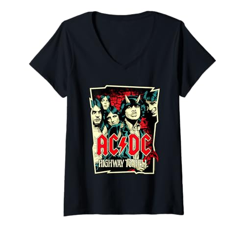 Womens AC/DC Highway To Hell Illustration V-Neck T-Shirt