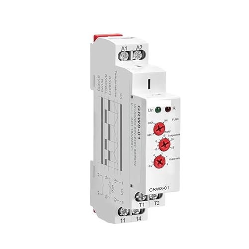 Temperature Control Relay Din Rail 16A AC/DC24-240V with Sensor Heating & Cooling GRW8-01/02 RUAJOGYNVM(GRW8-01-1m Sensor)