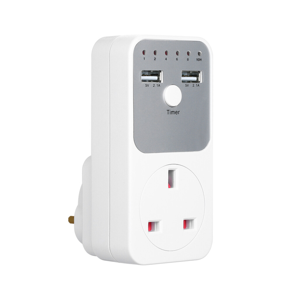 Countdown Timer Socket with 2 USB Ports 5V 2.1A UK Plug AC 230V Switch