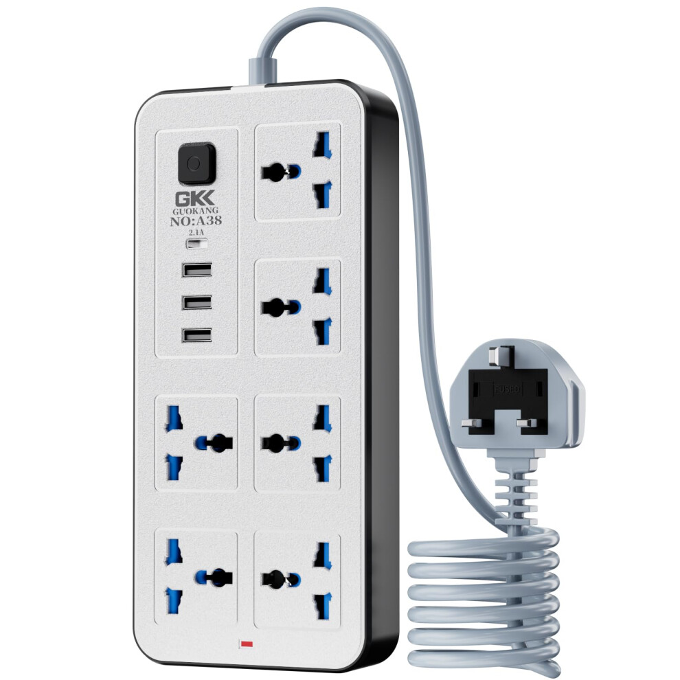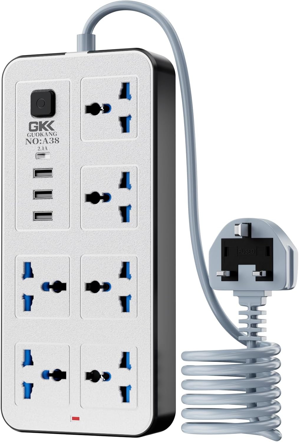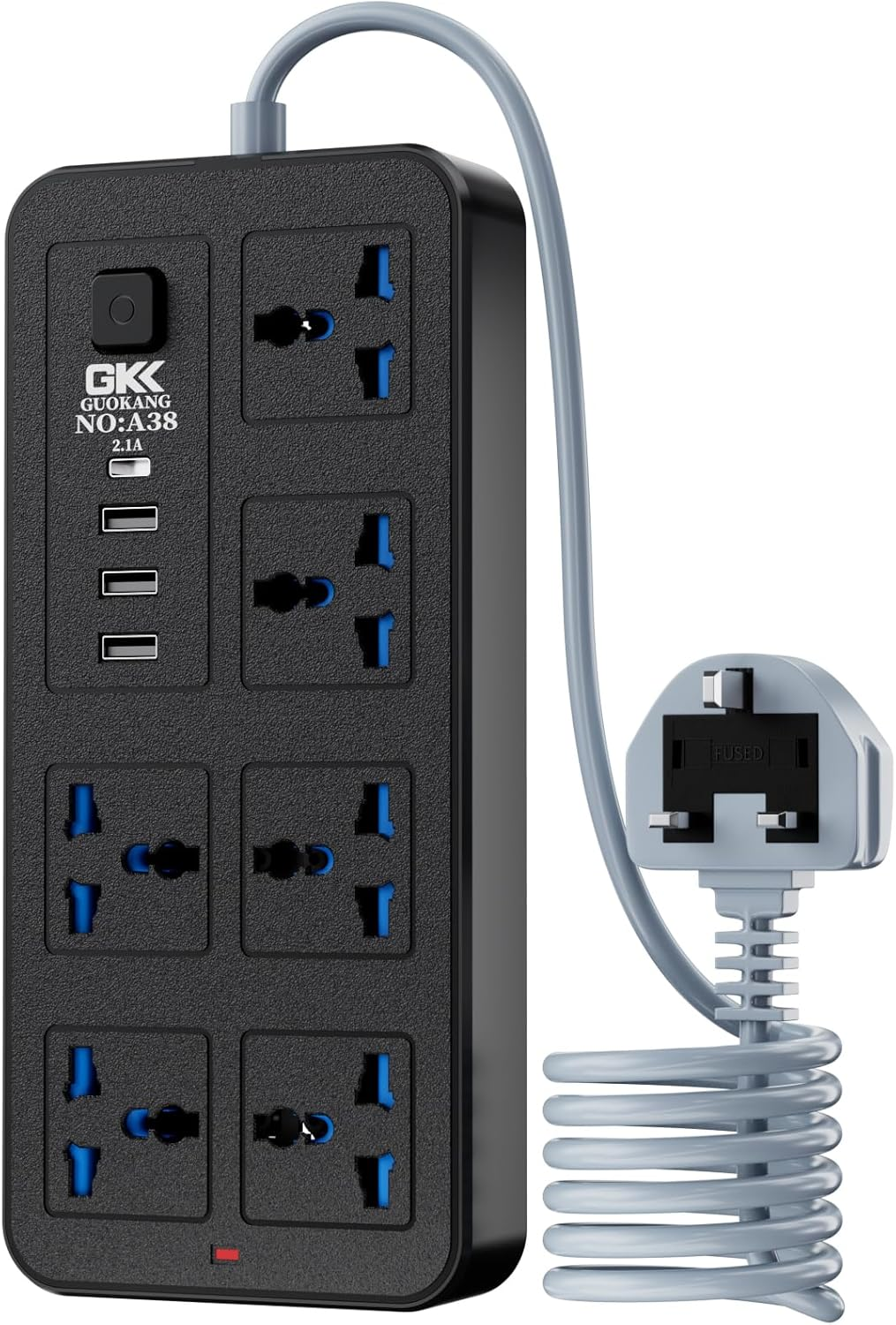 UK Power Strip outlets socket 6 AC Plug Outlets Extender switch and 3 USB & 1 t