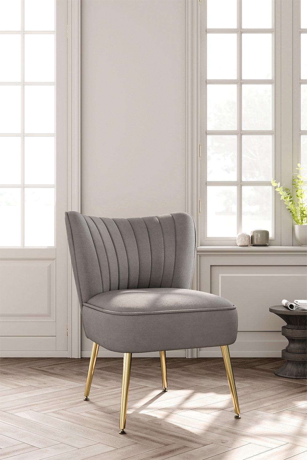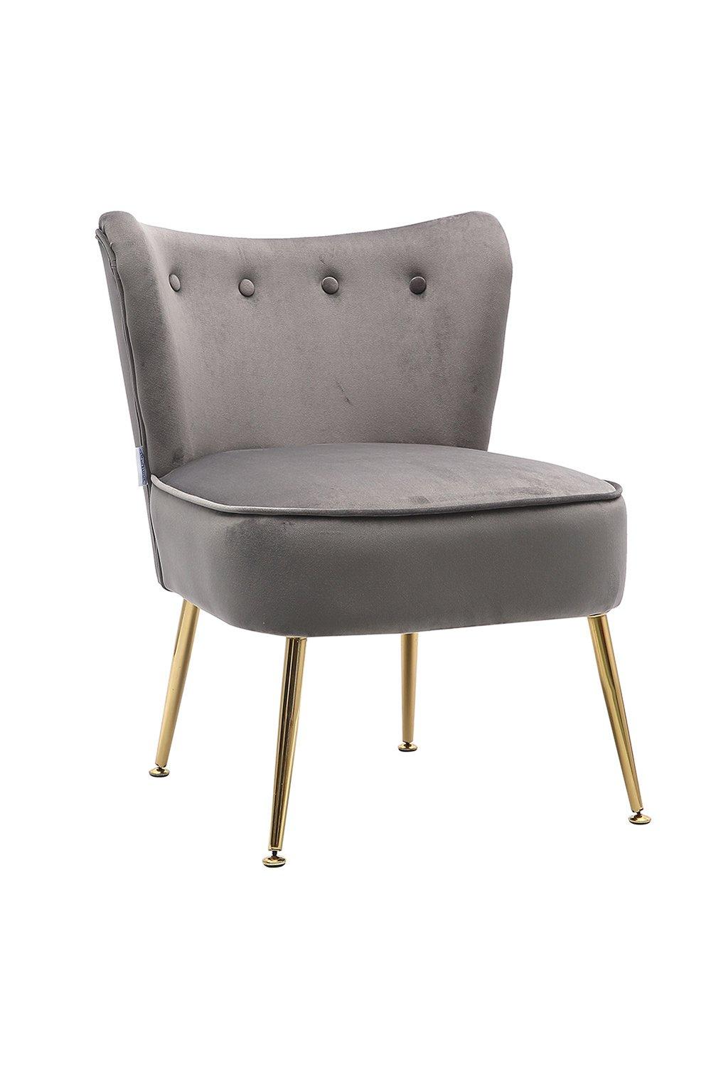 Grey Velvet Armless Wingback Accent Chair with Gold Metal Legs