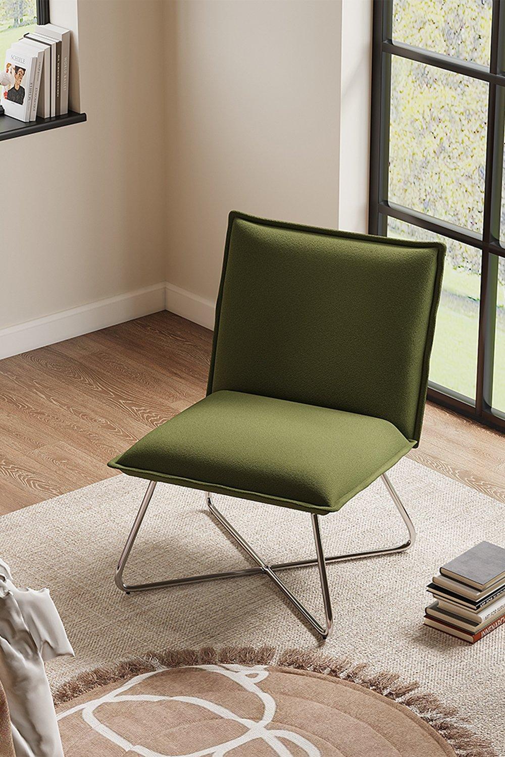 Green Velvet Accent Chair Modern Armchair Criss Cross Metal Legs Padded Seat New