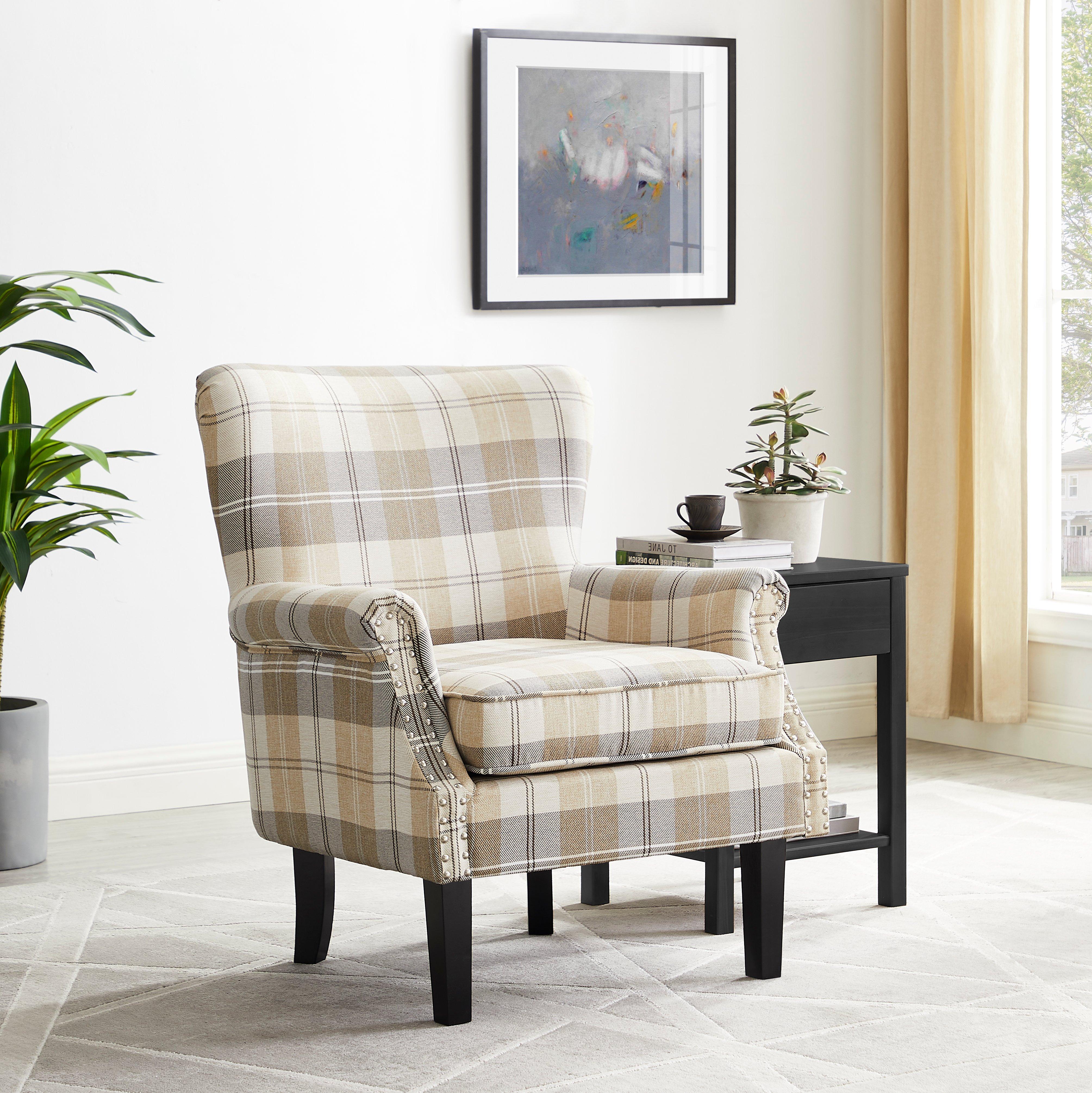 Living Room Accent Chair Rolled Arms Bedroom Modern Armchair Wing Back Wood Legs