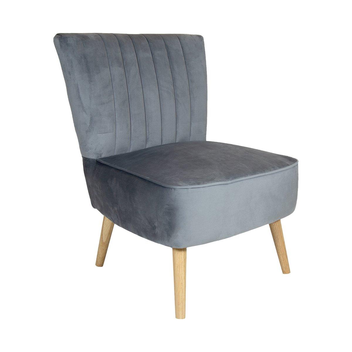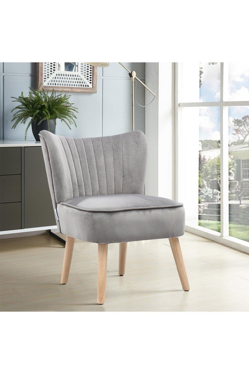 Velvet Cocktail Occasion Accent Chair Solid Wood Legs Grey