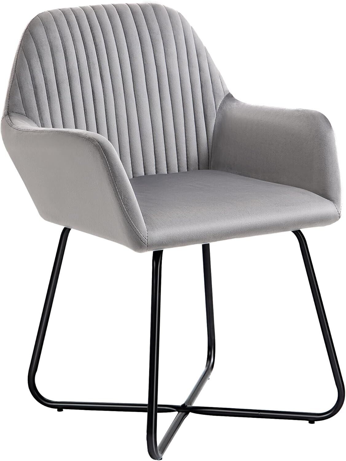 Grey Velvet Accent Chair Vanity Armchair Crossed Metal Legs Padded Tufted Back