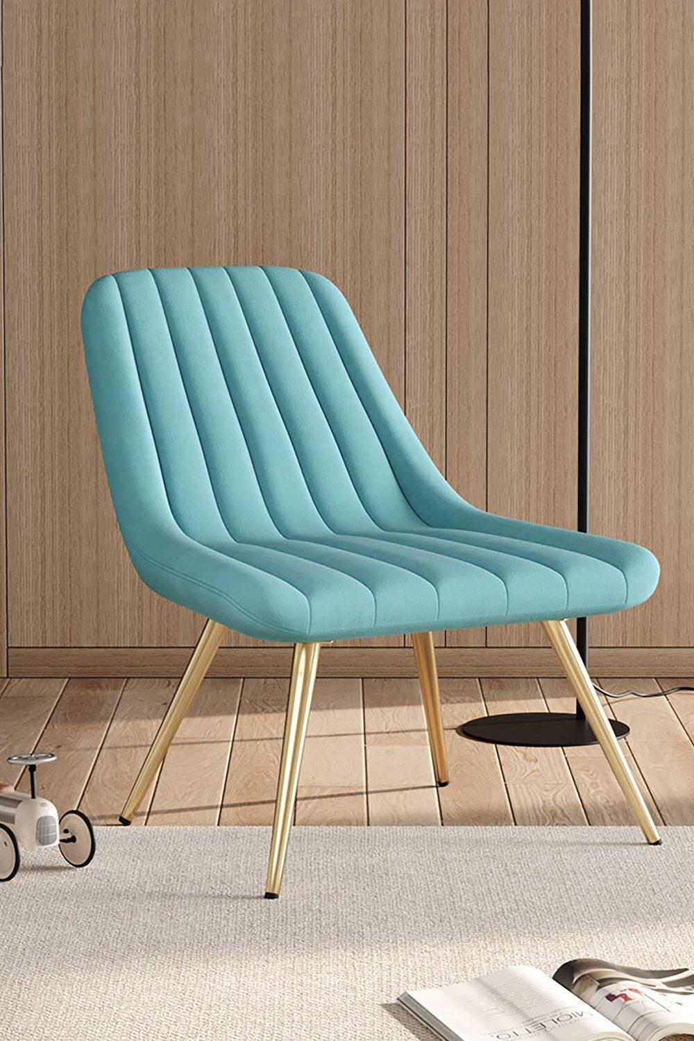 Blue Velvet Armless Wingback Accent Chair with Gold Metal Legs