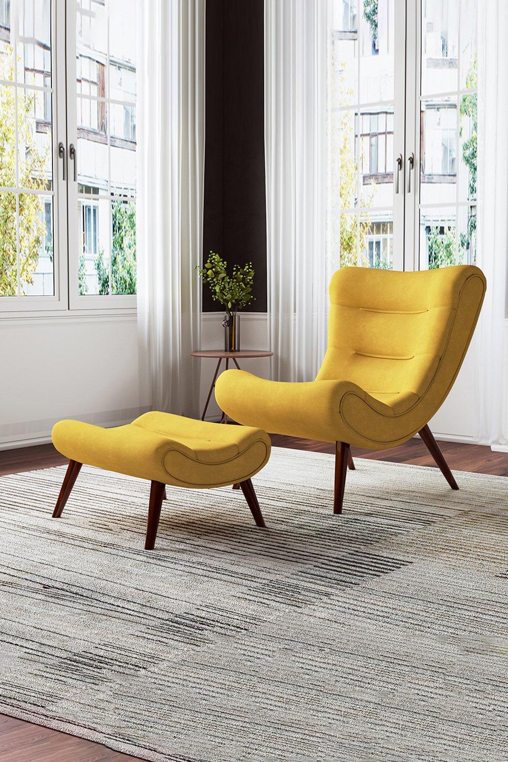 Velvet-Feel Accent Chair with Ottoman Tub Seat Padding Wood Frame