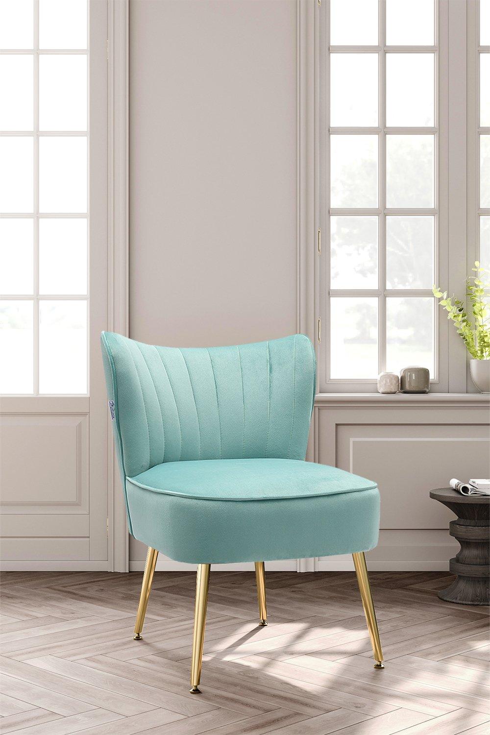 Velvet Buttoned Cocktail Accent Chair with Metal Gold Legs