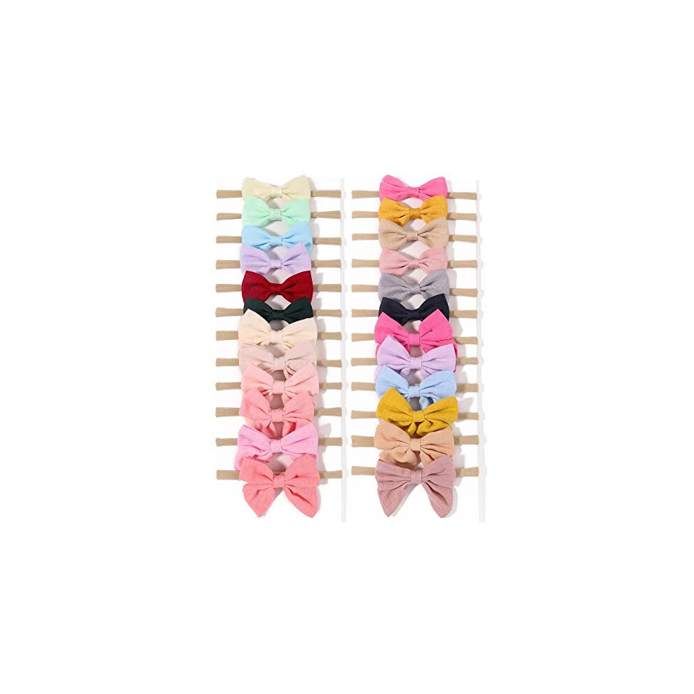 Dooboi 20pcs Baby Girls Bows Headbands Nylon Hairbands Ribbon Bow Elastic Hair Accessories for Newborns Infants Toddlers and Kids