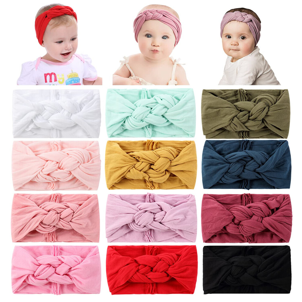 Cinaci 12 Pack Solid Super Stretchy Nylon Wide Celtic Knotted Headbands Headwrap Hair Accessories for Baby Girls Infants Toddlers Kids Teens