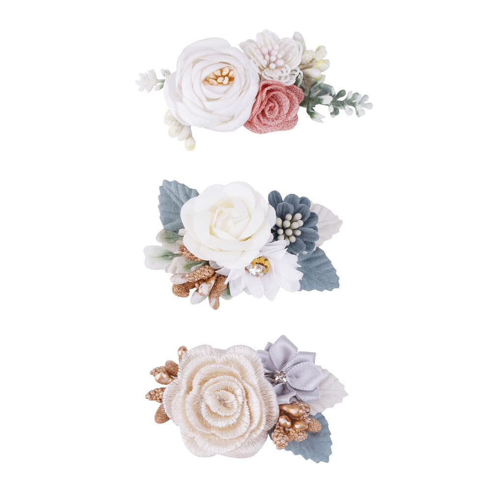 3pcs Adorable Floral Hair Clips For Baby Girls Boutique Fully Lined Clips Hair Accessories For Infants Toddlers Birthday Party Photography