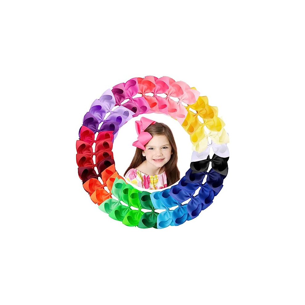 Oaoleer 30 Colors 6 Inch Hair Bows Clips Grosgrain Ribbon Bows Hair Alligator Clips Hair Barrettes Hair Accessories for Girls Toddler Infants Kids Tee