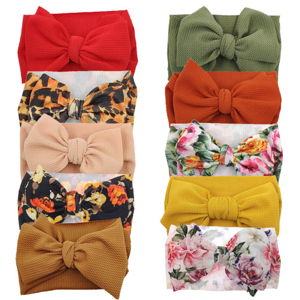 10x Bow Headband Nylon Elastic Head Wrap Hair Band Accessories For Baby Infants