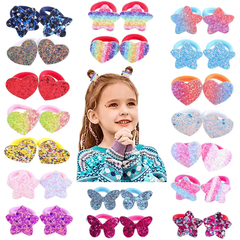 20 Pcs Children Elastic Hair Ties Blingbling Cute Candy Color Hair Bands Girls Hair Ring Soft Ponytail Holder Hair Accessories for Infants Toddlers Ki