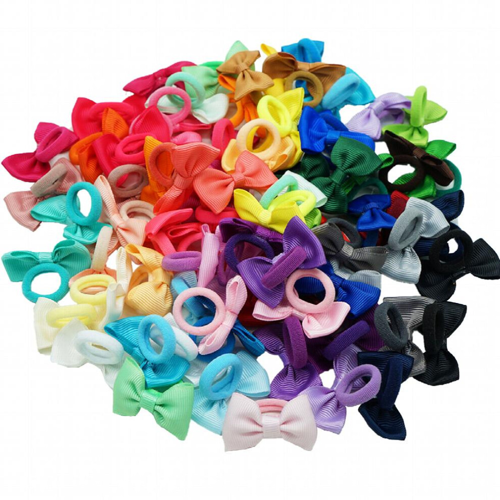 Jollybows 80PCS 2 Inches Baby Girls Mini Hair Bows Ties Elastic Hair Rubber Band Grosgrain Ribbon Hair Accessories for Kids Toddlers Infants