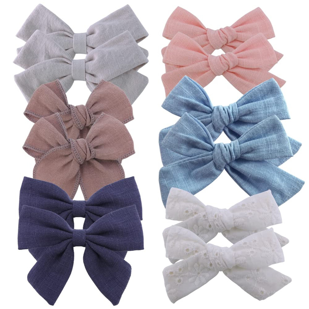 12 PCS Linen Bow Hair Clips for Baby Girls Hair Bows Alligator Clips Accessories Infants Toddler Kids Hairgrips (Assorted B)