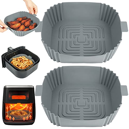 Air Fryer Liners-Square Silicone Air Fryer Liner Reusable,2pcs Air Fryer Silicone Liners Accessories Airfryer Liner Non-Stick Air Fryers Basket Tray for COSORI,Ninja,Tefal EY245840,Tower,Chefman