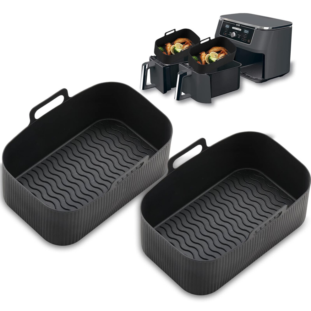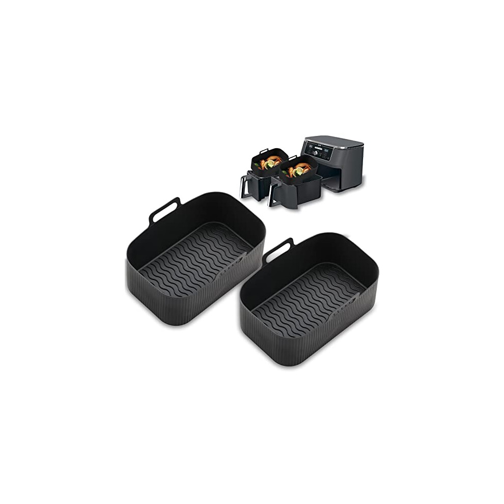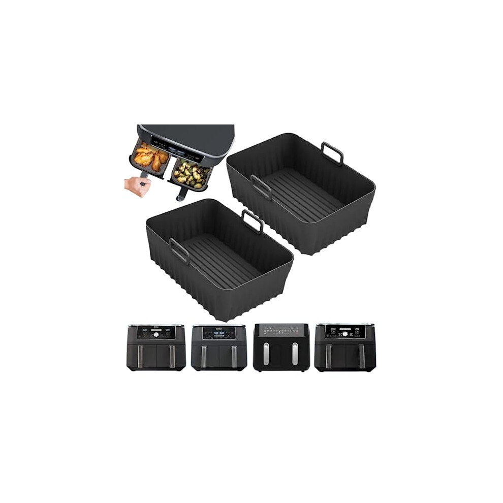 2Pcs Silicone Air Fryer Liners for Ninja Dual AF400UK AF300UK KEPLIN SL400UK Tower, Reusable Airfryer Accessories for EUARY Best Cookwise Instant Vortex MONCOOK 7.6-9.5L