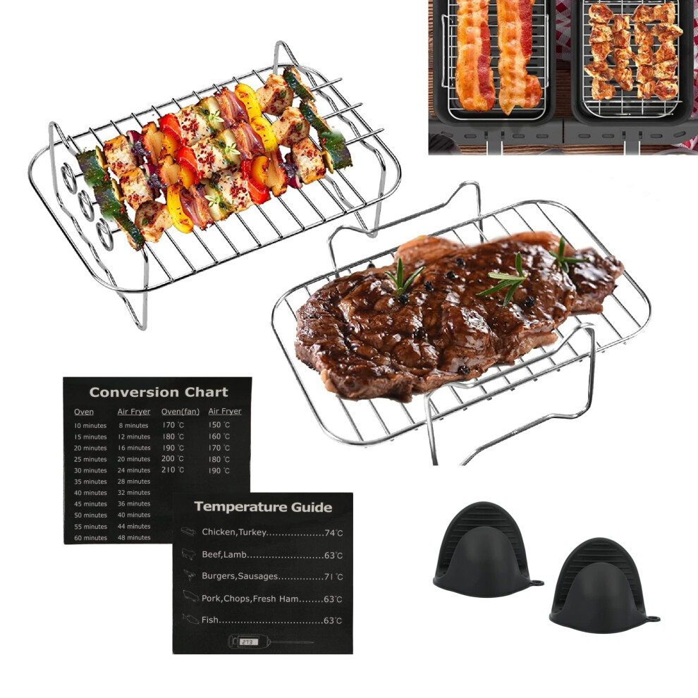 2Pcs Ninja Air Fryer Accessories, Air Fryer Racks 304 Stainless Steel, Airfryer Rack for Dual Drawer AF300UK AF400UK 7.6L-10.4L Compatible with Ninja, Cosori, Russell Hobbs Double Drawer Airfryer