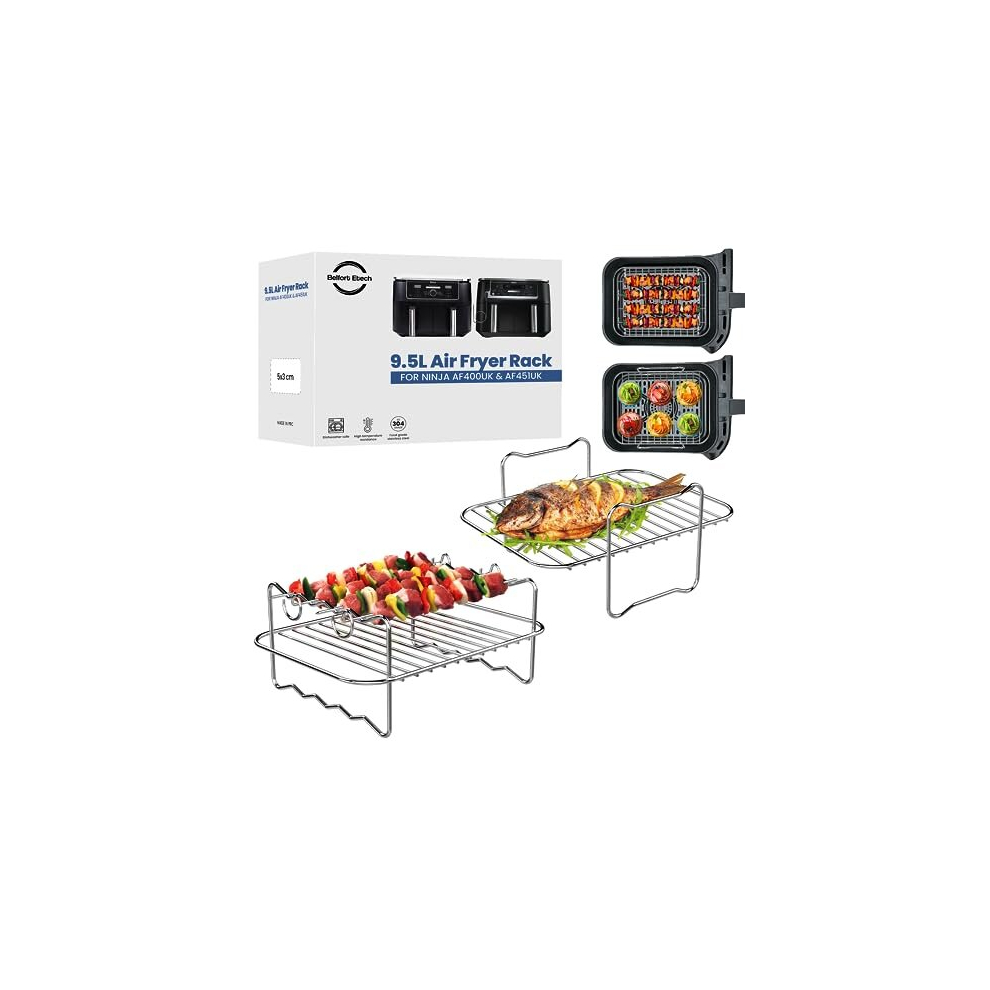 Ninja AF400UK & AF451UK Air Fryer Rack for 9.5l Ninja Dual air fryer-2pcs Reusable 304 Stainless Steel Ninja AirFryer Accessories Racks for Ninja Food