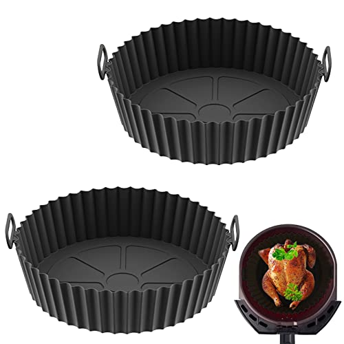 Air Fryer Silicone Pot, 2 Pack Reusable Silicone Air Fryer Liners, Air Fryer Accessories, Kitchen Accessories Replacement for Disposable Parchment Paper Liner, Compatible with Ninja, Tower, COSORI