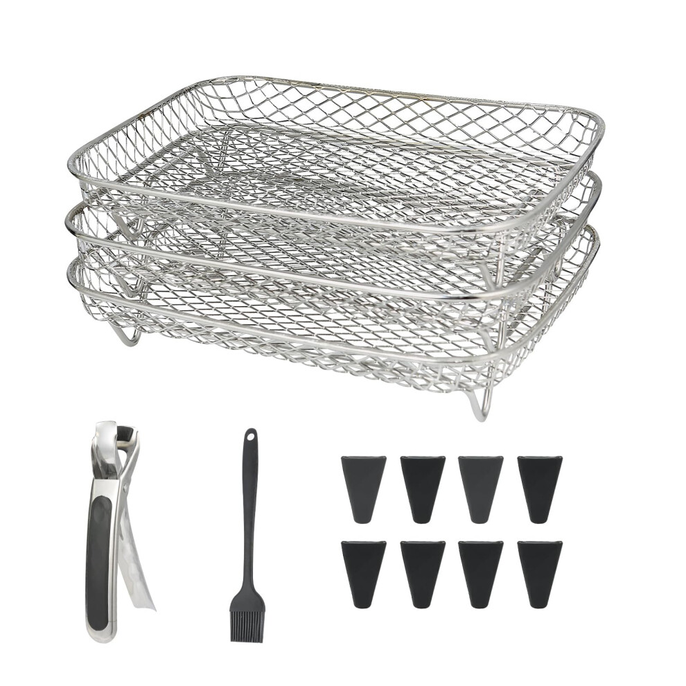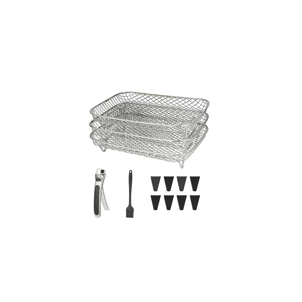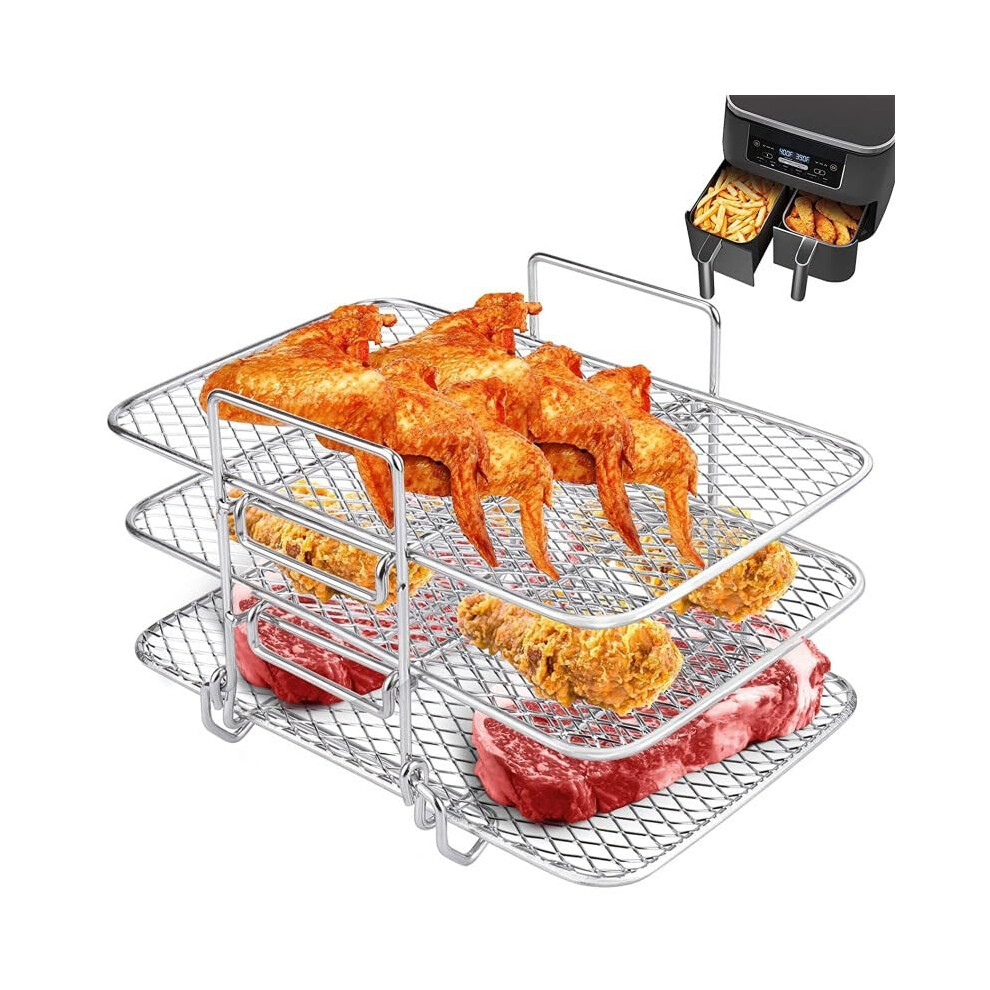 YQL Air Fryer Rack for Ninja Dual, Three-Layer 304 Stainless Steel Airfryer Shelf Dehydrator Rack, AF300UK Accessories, Stackable Air Fryer Accessories for Ninja,Tower,Salter,EMtronics Double Basket