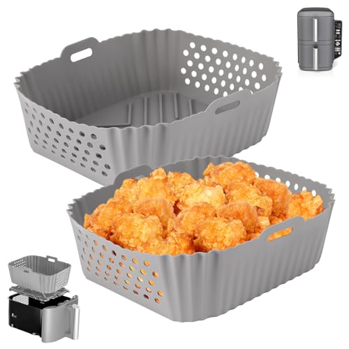 YQL Air Fryer Silicone Liner for Ninja/Tower Dual/Instant Vortex, Silicone Air Fryer Liners Reusable Air Fryer Accessories for Ninja Foodi AF300UK, Salter Dual Air Fryer (2PCS), Grey
