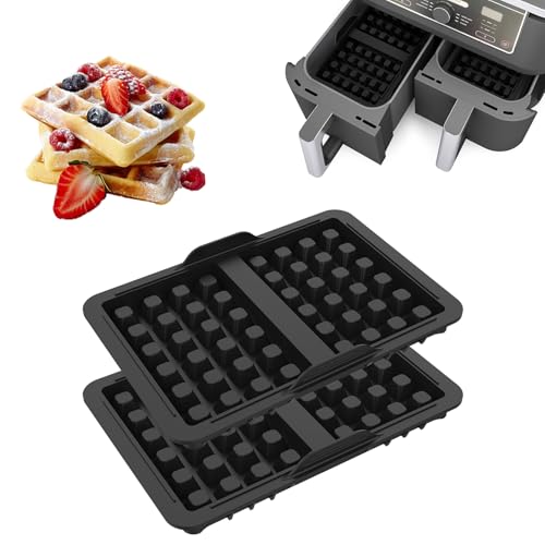 HOTUT Silicone Air Fryer Liner, 2 Pcs Air Fryer Silicone Waffle Moulds, Air Fryer Waffle Mould Accessories for Ninja Dual Air Fryer AF400UK/AF451UK, Reusable Silicone Waffle Mould, Black