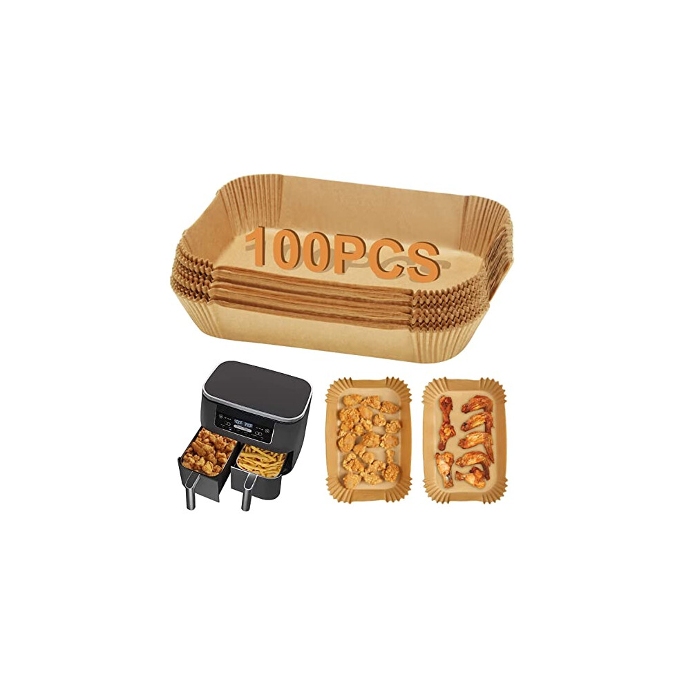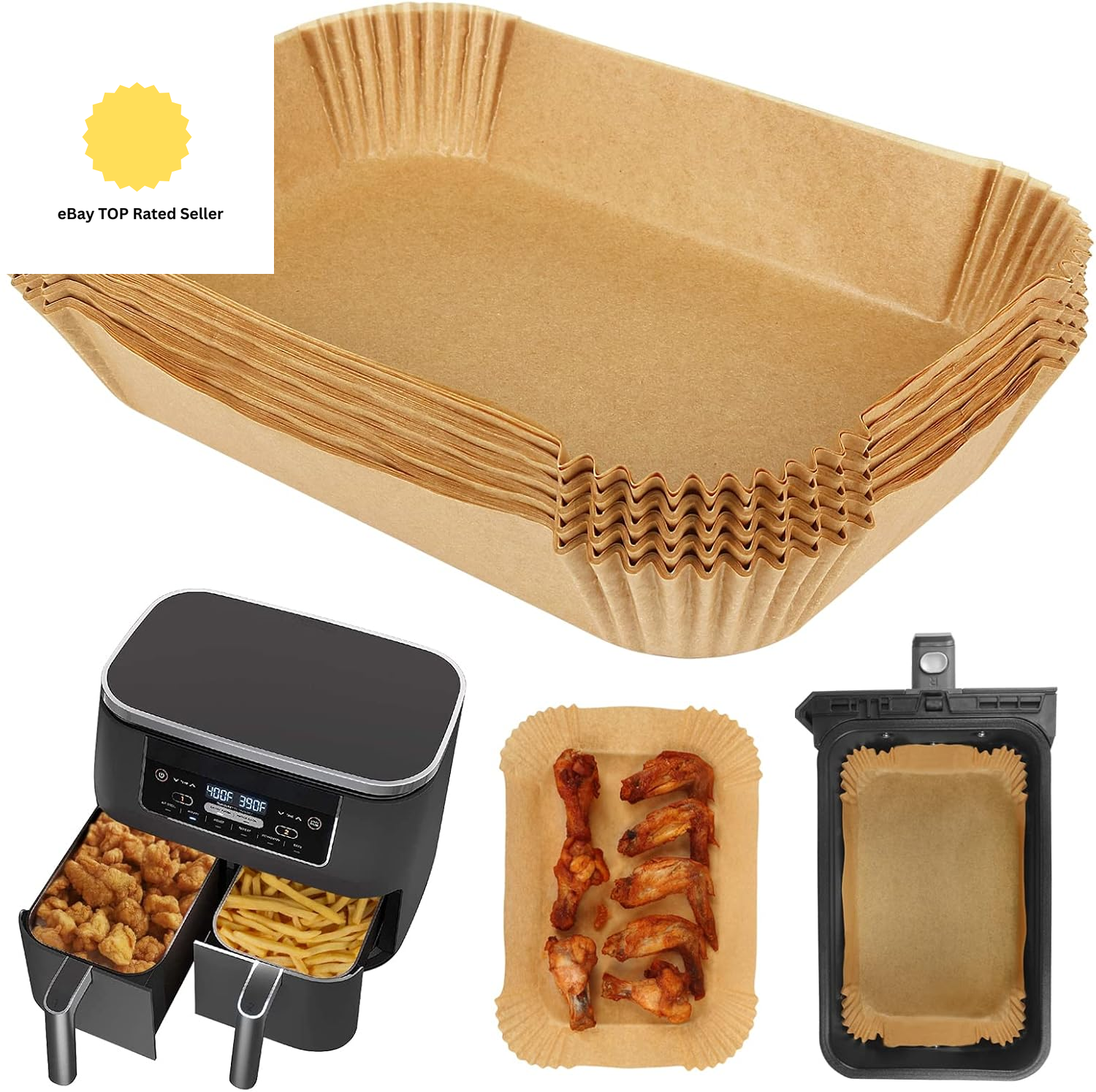 Air Fryer Liners for Ninja Dual, 100PCS Parchment Paper for Air Fryer, Disposable Rectangle Liners for Air Fryer Baskets Airfryer Accessories