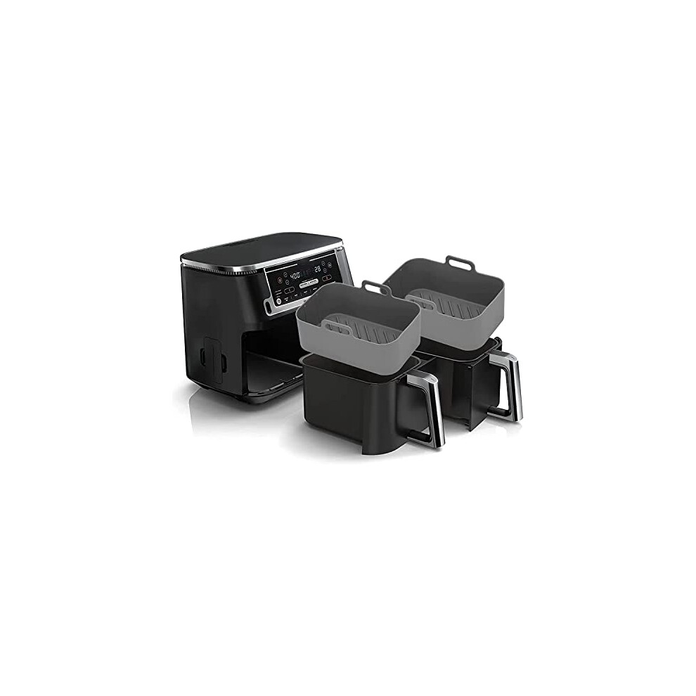 Air Fryer Liners Silicone 2 Pack for Ninja Foodi AF300UK AF400UK AF451UK Dual Zone 8L 9.5L, Airfryer Liners Compatible with Tower T17088, Keplin, EMtronics, Reusable Non-Stick Air Fryer Accessories