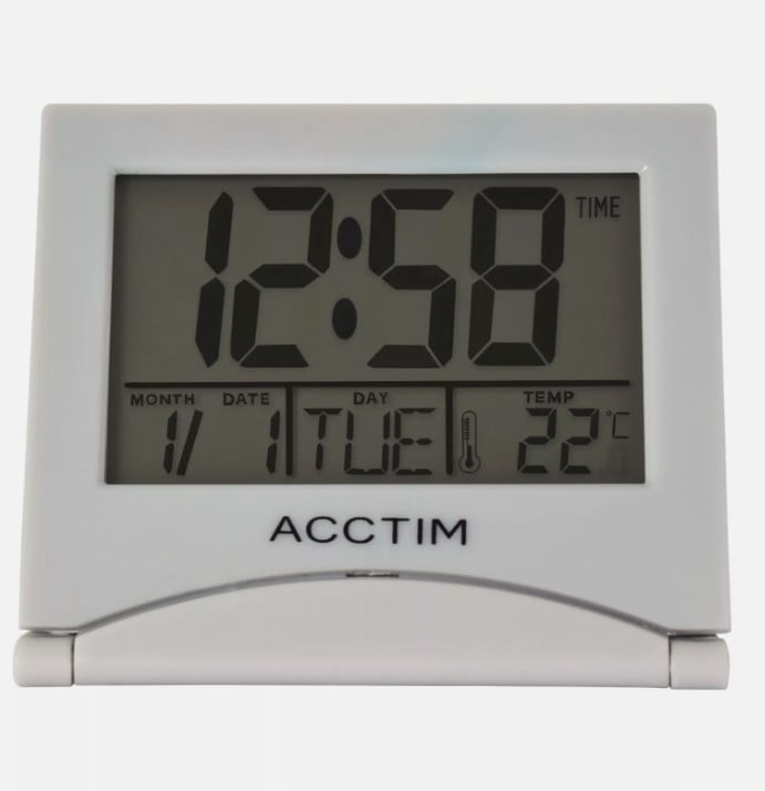 Alarm Clock Acctim Mini Flip II Digital With Date Temperature Display Folding