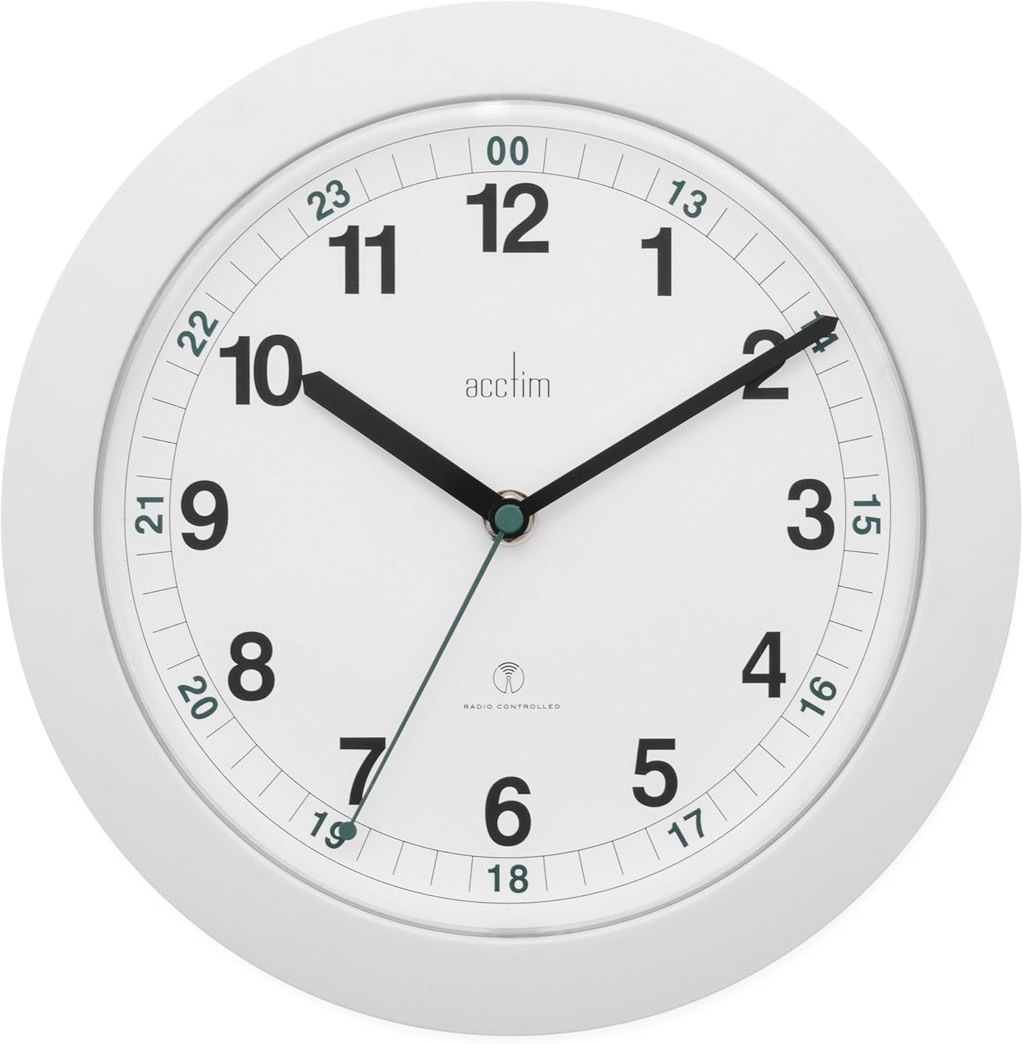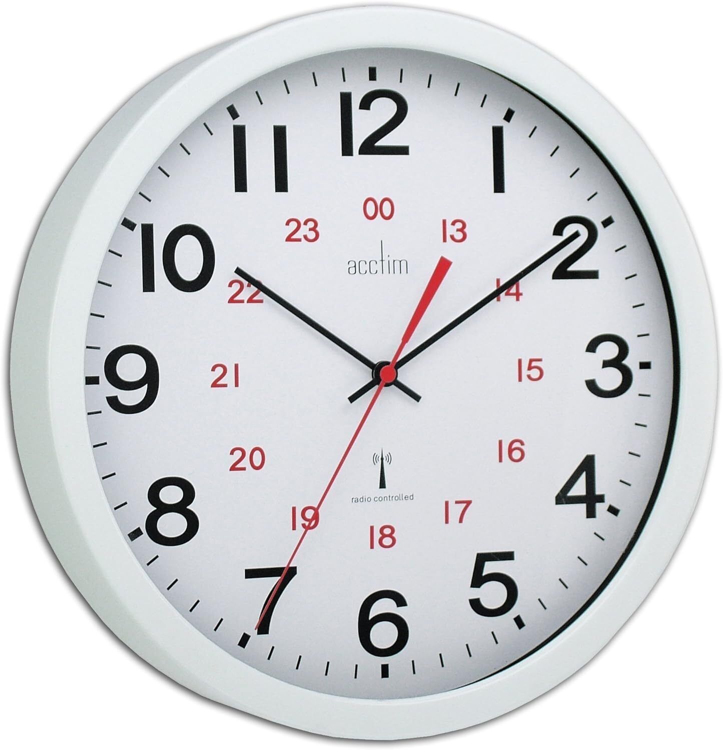 Acctim Wall Clock Radio Controlled 30cm Wht 74172, White, 36 5 cm
