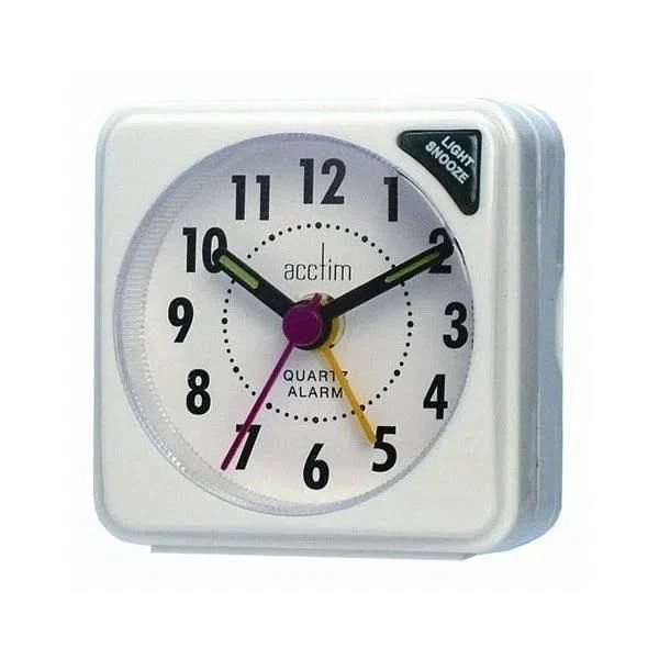 Acctim Micah Alarm Clock, Analogue Display, Non-Ticking, Blue LED Backlight, Wh