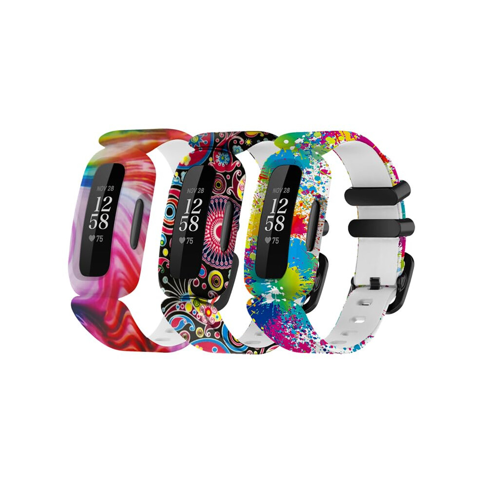 Tuocal 3 Pack Silicone Straps Compatible with Fitbit Ace 3 Strap/Fitbit Inspire 2 Strap for Kids, Cute Pattern Colorful Silicone Sport Adjustable Waterproof Replacement Wristband for Boys Girls
