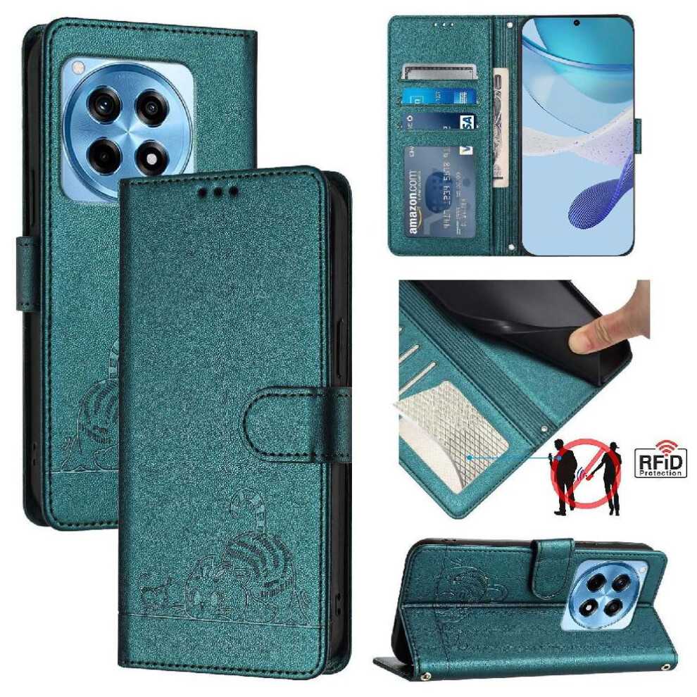 (Bottle green ) Case for Oneplus Ace 3 5g Cat Rfid Card Slot Holder Kickstand Wallet Flip Cover