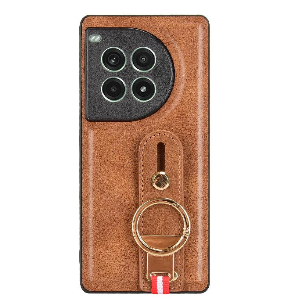 (Brown) Case for Oneplus Ace 3 Pro Compatibility Wrist Strap Buckle Ring Kickstand Premium Pu Leather with Bottle Opener