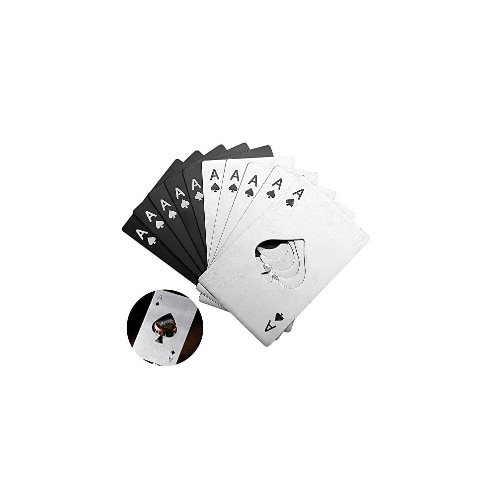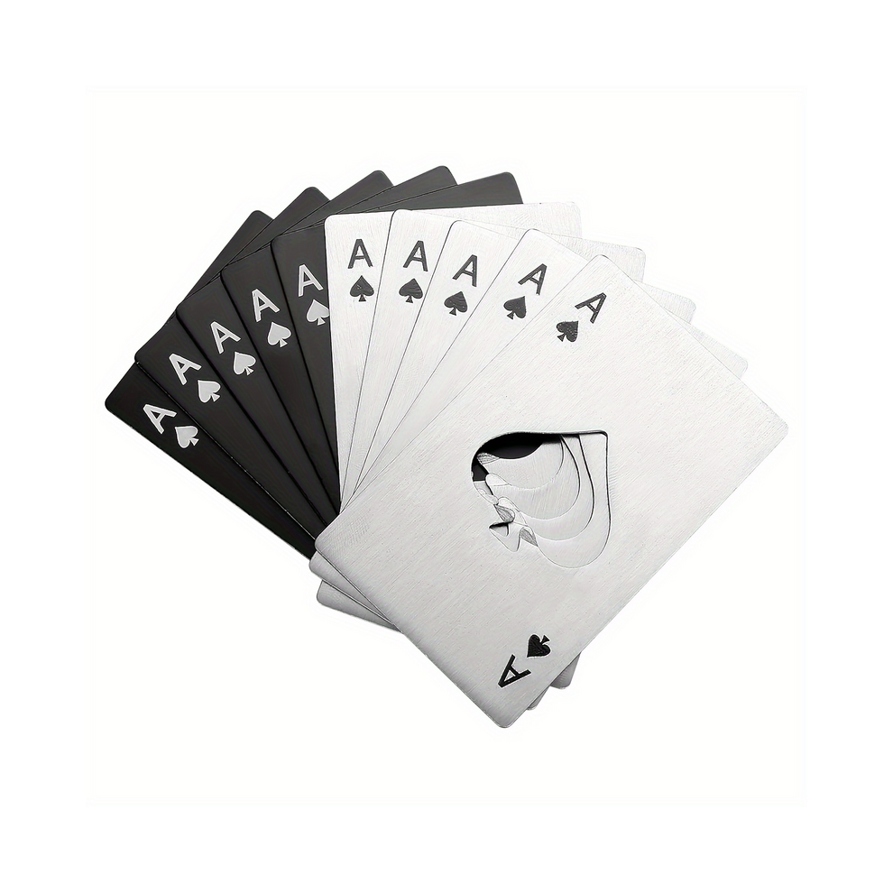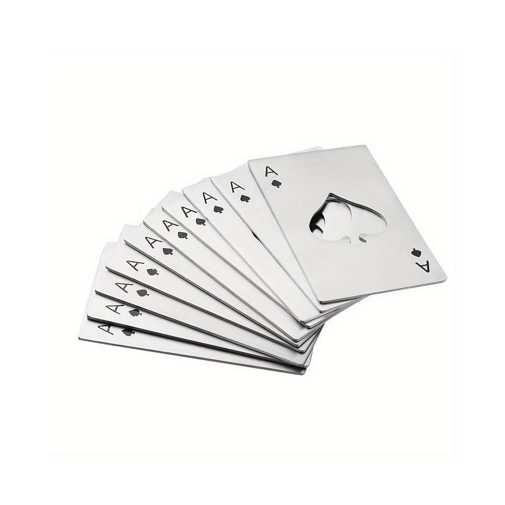 10 Pcs Bottle Openers, Stainless Steel Beer Caps Cans Openers, Poker Ace of Spades A Cards Water Bottles Openers, Wallet Bottle Openers - Silver &