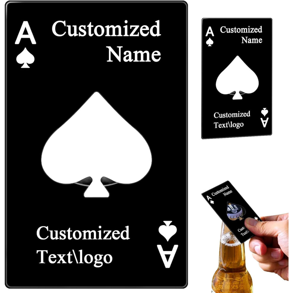 Customizable Name Poker Bottle Opener Stainless Steel Personalized Wallet Card Ace Design for Restaurants Kitchen Parties