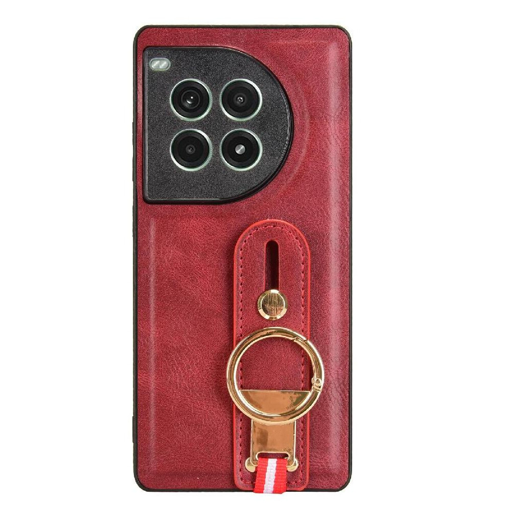 (Red) Case for Oneplus Ace 3 Pro Compatibility Wrist Strap Buckle Ring Kickstand Premium Pu Leather with Bottle Opener