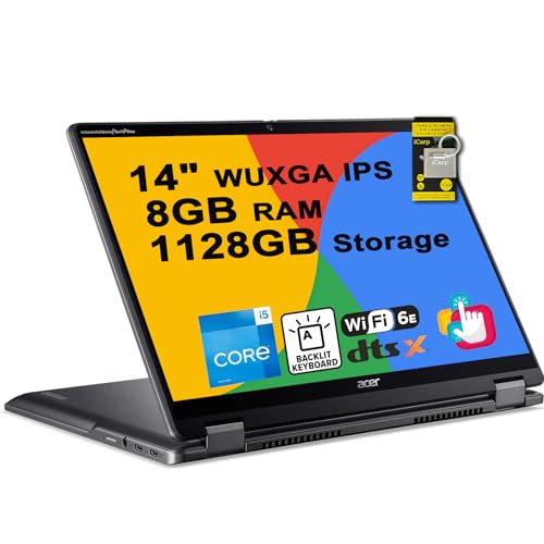 acer Chromebook Plus Spin 514 2-in-1 Laptop 14" WUXGA IPS Touchscreen (100% sRGB) Intel 10-core i5-1334U 8GB RAM 1128GB Storage (1TB SSD + 128GB SD Card) Backlit Type-c ICP Hub w/Google AI