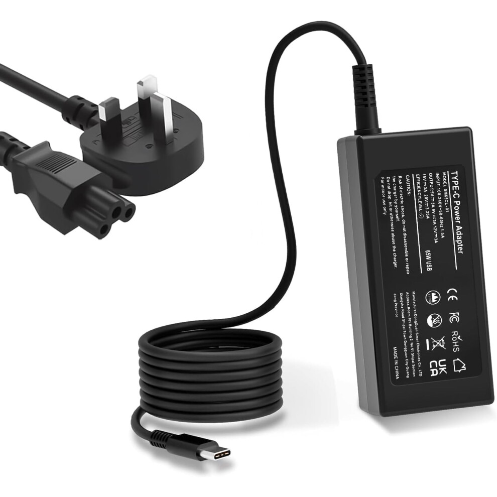 Universal 65W USB C Laptop Charger Compatible with Lenovo Dell HP Samsung Asus Acer Google Chromebook Charger, Type-C Fast Charging UK AC Adapter